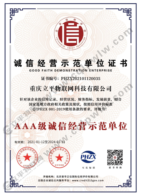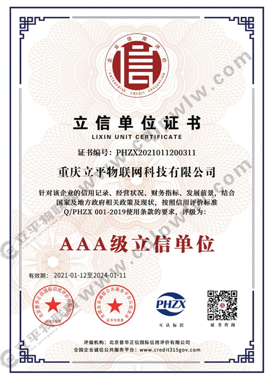 3A企业信用等级证书